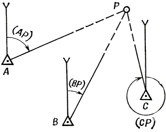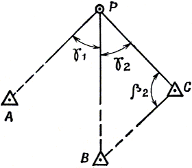 Дирекційний кут (СВ) визначають розв’язанням оберненої геодезичної задачі, а дирекційні кути (АР), (ВР) і (СР) – використовуючи кути, які виміряні на точціРі вихідному пунктіС:
