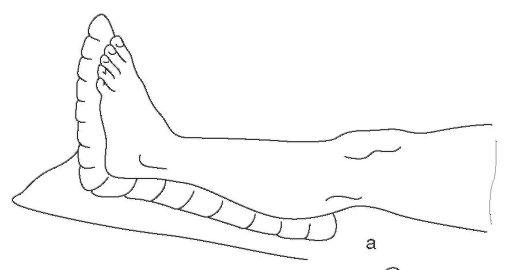 • Недостаточная фиксация стопы (нижний конец боковых шин не изогнут Г-образно), что приводит к ее подошвенному отвисанию.