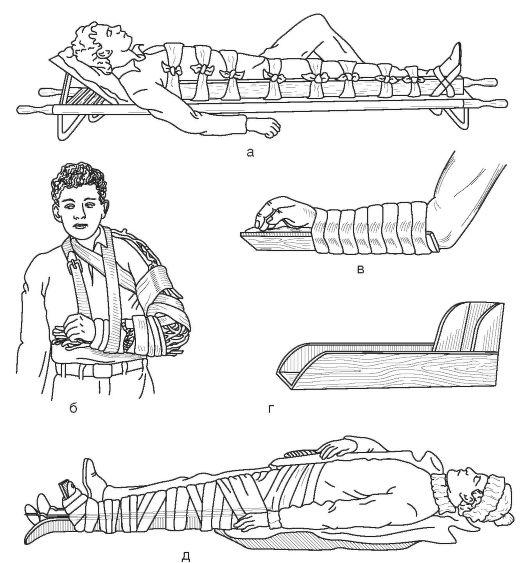 огнестрельных, открытых и закрытых переломах, обширных повреждениях мягких тканей, повреждениях суставов, сосудов и нервных стволов. Отсутствие иммобилизации во время транспортировки может привести к развитию тяжелых осложнений (травматический шок, кровотечение и др.), а в некоторых случаях и к гибели пострадавшего.