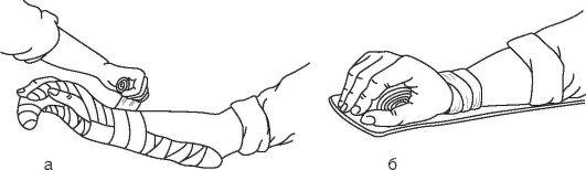 и обуви необходимо обращать внимание на жалобы пострадавшего. Онемение, похолодание, покалывание, усиление боли, появление пульсирующей боли, судороги в икроножных мышцах являются признаками нарушения кровообращения в конечности. Необходимо немедленно расслабить или рассечь повязку в месте сдавления.