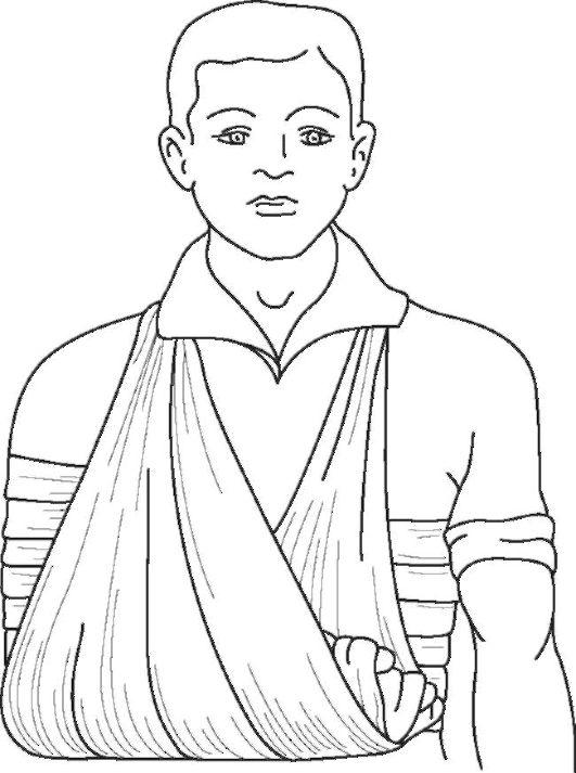 Очень тяжело переносится ранеными с сочетанным повреждением грудной клетки иммобилизация обеих верхних конечностей, выполненная с помощью лестничных шин обычным методом. Менее травматична в таких случаях транспортная иммобилизация верхних конечностей двумя П-образными шинами. Пострадавшему придают положение полусидя. Обе верхние конечности сгибают в локтевых