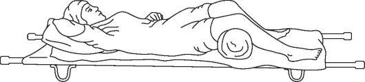 Эвакуация пострадавших с повреждениями бедра, тазобедренного и коленного суставов осуществляется на носилках в положении лежа. Для предупреждения и своевременного выявления осложнений транспортной иммобилизации необходимо следить за состоянием кровообращения в периферических отделах конечности. Если конечность обнажена, то следят за окраской кожи. При неснятой одежде