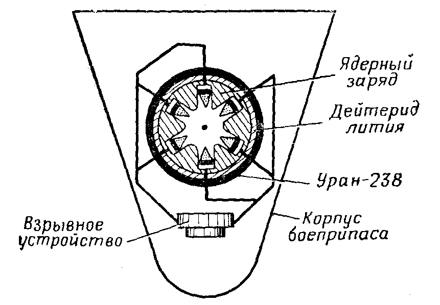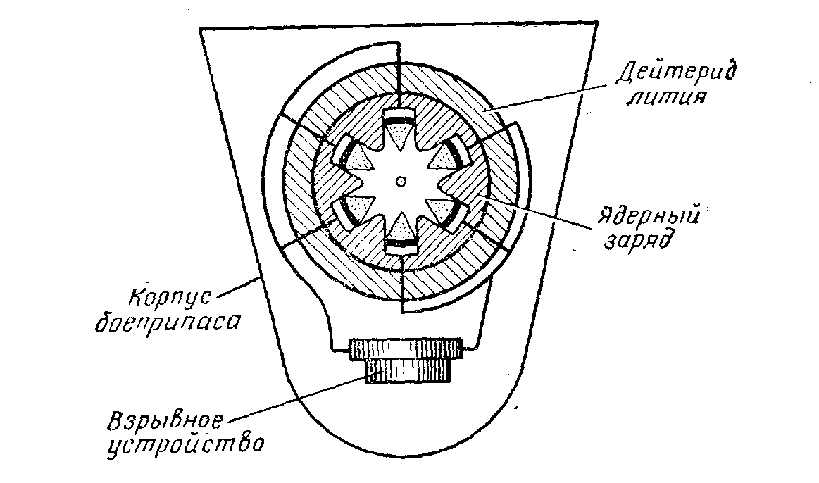 Схема устройства термоядерного заряда типа «деление — синтез».