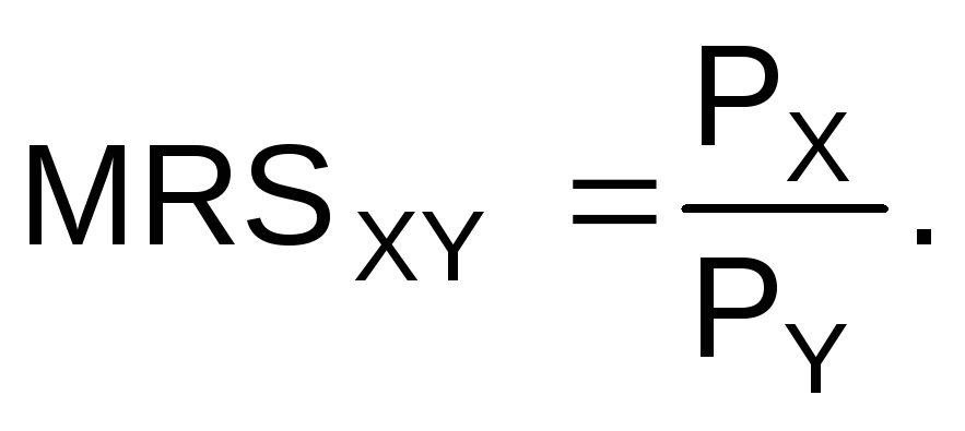 Условием максимизации полезности индивидуума при потреблении двух благ является: