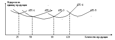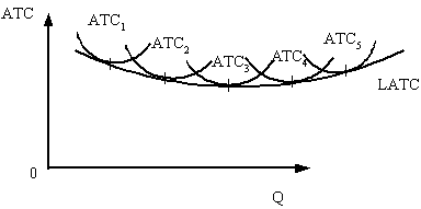 Фактически во всех отраслях количество возможных размеров предприятий ничем не ограничено. Кривая долгосрочных АТС показывает наименьшие издержки производства единицы продукции, с которыми может быть обеспечен любой объем производства при условии, что фирма имела в своем распоряжении достаточно времени для проведения всех необходимых изменений в размерах предприятия.