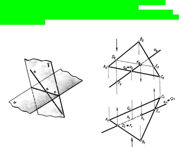 а Ç DE = К. Видимість прямої а відносно площини b (DАВС) визначається за допомогою двох пар конкуруючих точок. ТочкиD і F конкурують