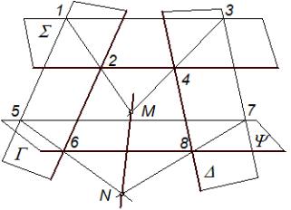 4)площини Γ і перетинаються другою площиною-посередником Ψ;