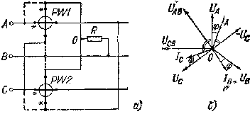 Ватметрможе бути включений так, як це показано на мал. 12.2, а або б.