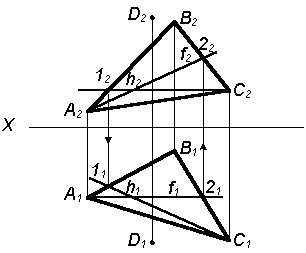 2. Строим фронталь в плоскости Р( АВС) – f ( f1f2) |