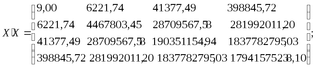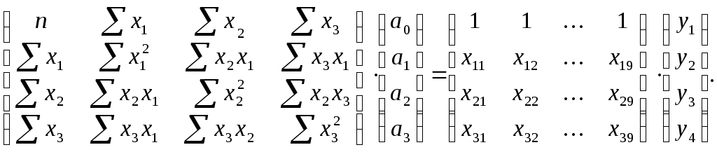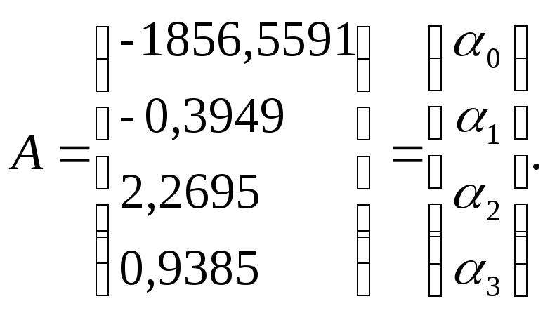 Звідси одержуємо рівняння для знаходження невідомих параметрів в матричному вигляді: