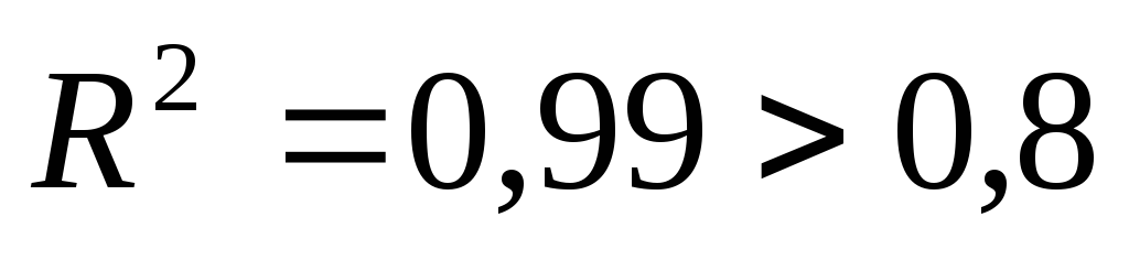 R=0,99 – чим ближче до 1 коефіцієнт множинної кореляції, тим більше сильний зв'язок між Y і безліччю Х.