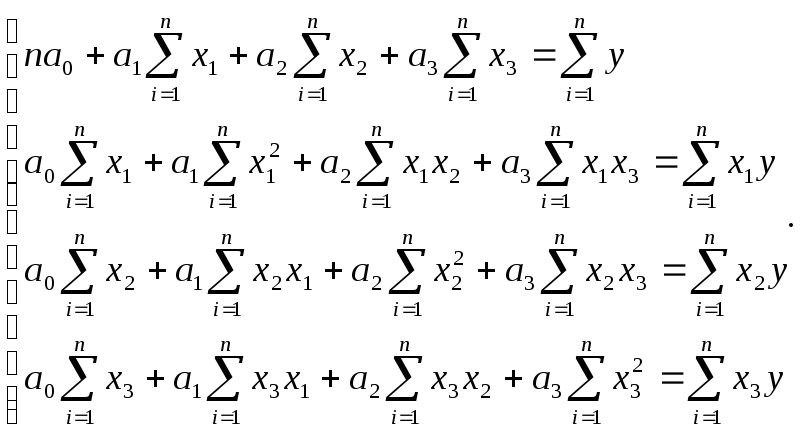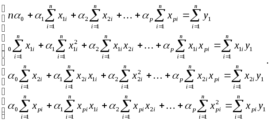 Після знаходження часних похідних і прирівнявши їх до нуля, після відповідних перетворень ми одержимо систему з (р+1) невідомим: