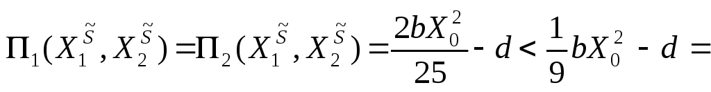 де X0 = (a – c) / b — величина спільного випуску, за якої прибуток кожної фірми є від’ємним і дорівнює – d.