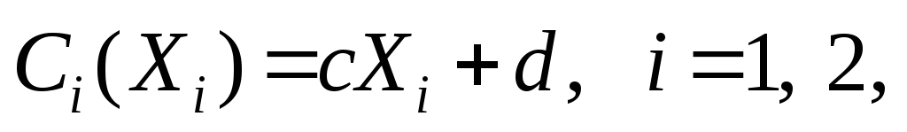 Нехай витрати обох фірм є однаковими лінійними функціями випуску (с — граничні витрати, d — постійні витрати):