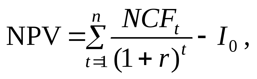 З метою спрощення вважатимемо, що згенерований проектом потік оплат має вигляд ануїтету, тобто NCFt = NCF для будь-якого t і може визначатися з виразу: