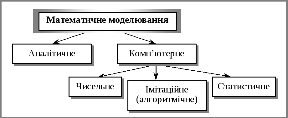 Класифікація видів математичних моделей може проводитися й за такими ознаками: аналітичне та комп’ютерне моделювання (рис. 2.1.3)1.
