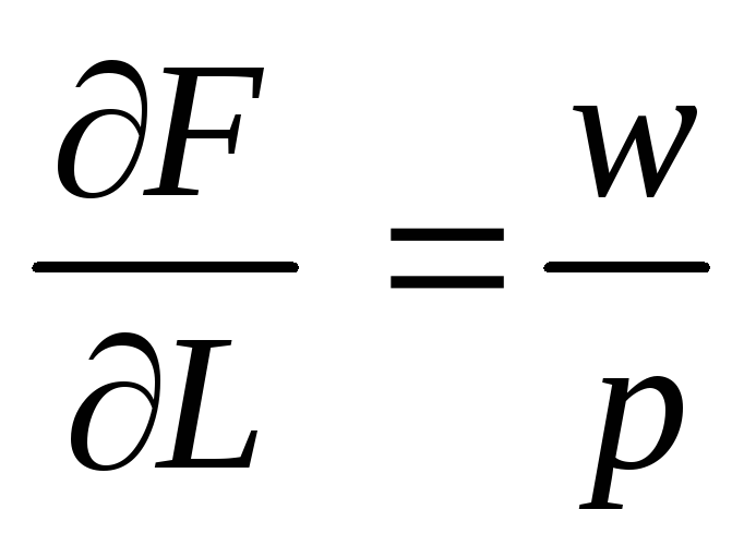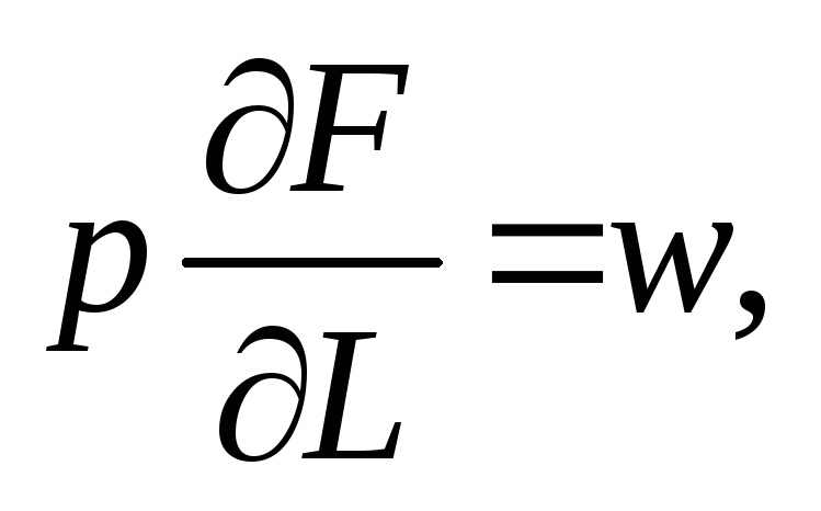 де p — ціна продукту; F = F(K, L) — макроекономічна виробнича функція, K — фонди, L — чисельність зайнятих.