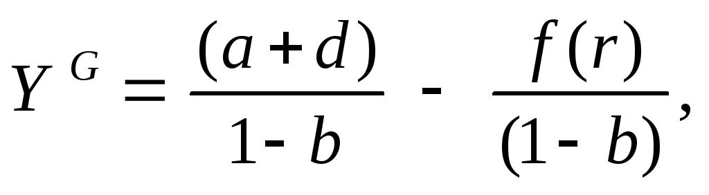 тобто крива рівноваги на ринку товарів (крива IS) є лінійно-спадною функцієюrі, отже, за фіксованого значенняrмає єдине рівноважне значенняYG(r).