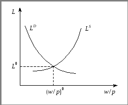 У класичній моделі пропозиція на товари є функцією рівня зайнятості, що визначається на ринку робочої сили Y = Y(L0). Отже, умова рівноваги така: