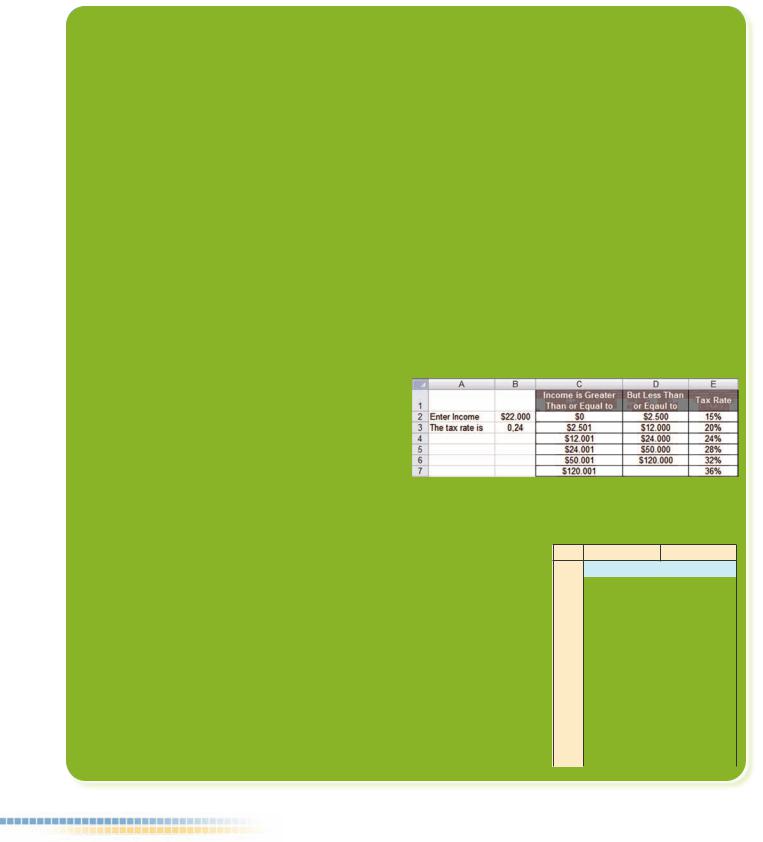 12.A very common use for a lookup formula involves an income tax rate schedule (see the figure next). The tax rate schedule shows the income tax rates for various income levels.