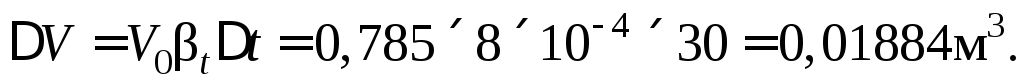Определяем изменение объема жидкости после нагревания, предварительно приняв t = 0,0008 К-1 , приложение 3.