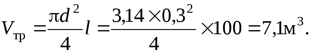 А) Определяем вместимость трубопровода при атмосферном давлении: