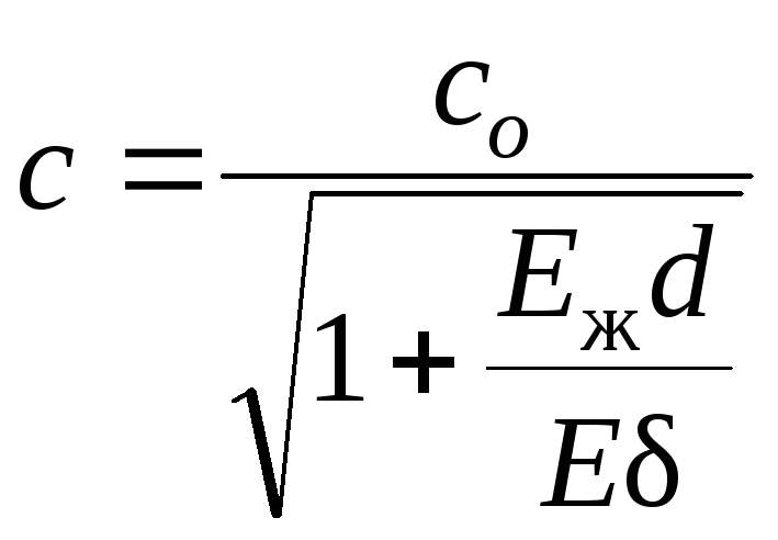 а) вычисляется скорость распространения фронта ударной волны по формуле (3.47), для чего предварительно находятся по приложению 2 модуль упругости чугуна Е = 98100 МПа и модуль упругости воды Еж = 2030 МПа, а по приложению 1 — плотность воды = 1000 кг/м3.