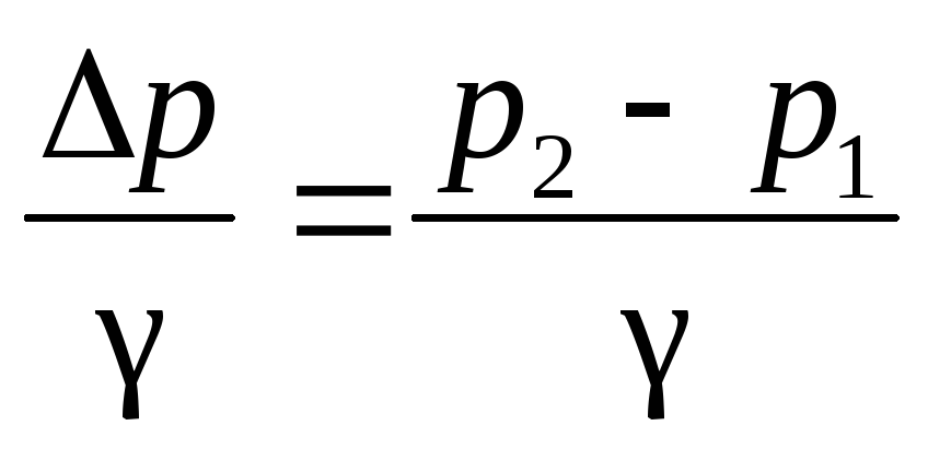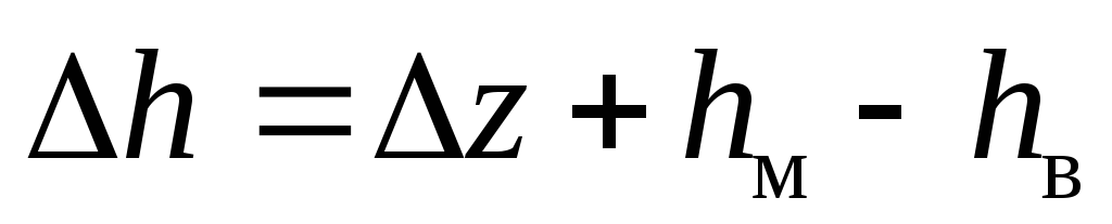 hм, hв — превышение точки подключения соответствующего прибора над центром тяжести сечения, в котором измеряется давление;