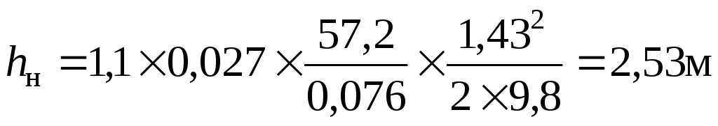 Вычисляются потери напора во всасывающем и нагнетательном трубопроводах по формулам (4.7) и (4.8):