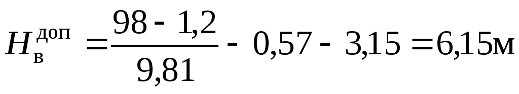 Наибольшая допустимая по условиям кавитации отметка оси рабочего колеса:
