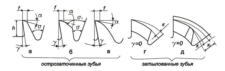 По направлению зубьев фрезы подразделяются на прямозубые, с наклонными и спиральными зубьями, в зависимости от формы – на острозаточенные и затылованные (рисунок 2.7).