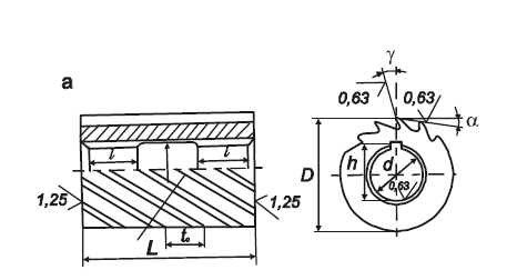 К основным конструктивным элементам цилиндрических фрез (рисунок 2.6,а) относятся наружный диаметр D, ширина фрезы L, диаметр под оправку D1, шаг зубьев p = πD/Z, число зубьев Z.