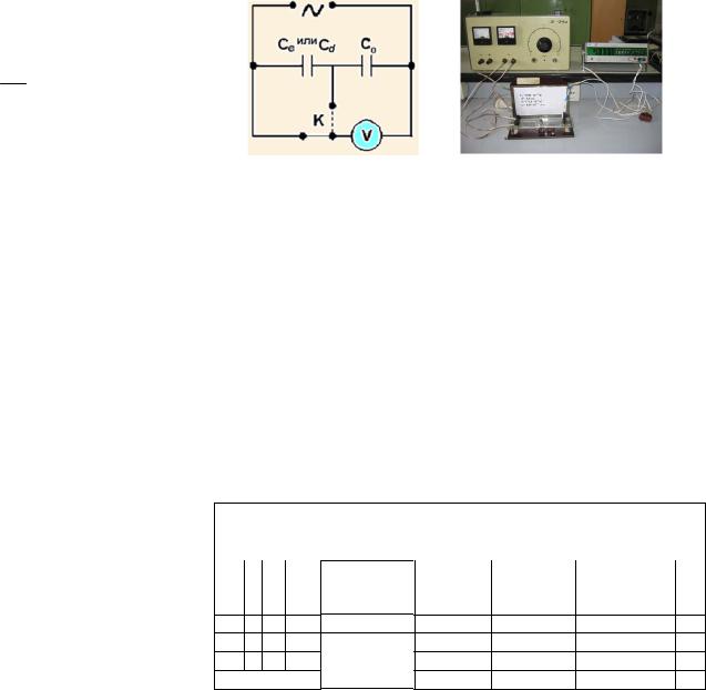 Рисунок 8 — Принципиальная схема и общий вид лабораторной установки: Со — конденсатор с известной емкостью, Св — плоский воздушный конденсатор с неизвестной емкостью, Сd — тот же конденсатор с плоской пластиной из диэлектрика,