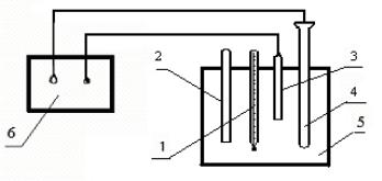 1 – термометр; 2 – палочка для перемешивания раствора; 3 – стеклянный электрод; 4 – хлорсеребряный электрод; 5 – стакан с раствором соли; 6 – pH-метр