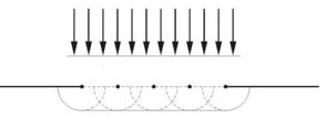 Рассмотрим плоскую волну, падающую на отверстие в непрозрачном экране (рис.1.6). Принцип Гюйгенса позволяет рассматривать каждую точку отверстия как источник вторичной волны (для изотропной среды эти вторичные волны сферические). Из рисунка видно, что огибающая вторичных волн заходит в область геометрической тени, демонстрируя явление дифракции.