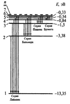 Рис. 2.13. Диаграмма уровней энергии атома водорода