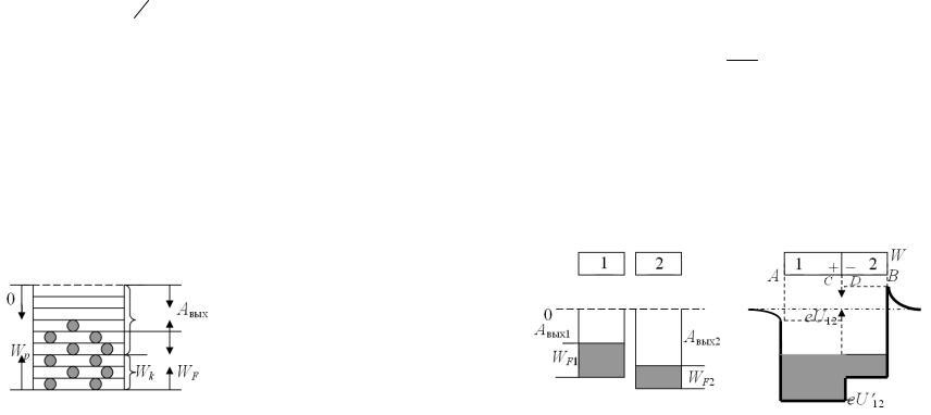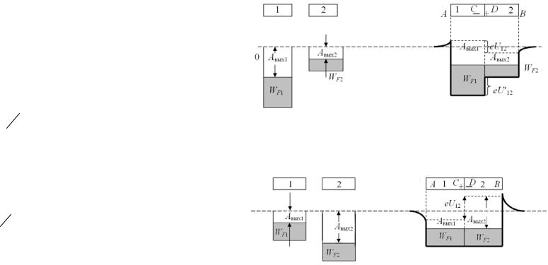 на рис. 3.9, Aвых1 ≥ Aвых2 (или ϕ1 ≥ ϕ2), WF1 ≥ WF2 и потенциалы в точках А и В связаны неравенством ϕА ≤ ϕВ, а в точках С и D име-