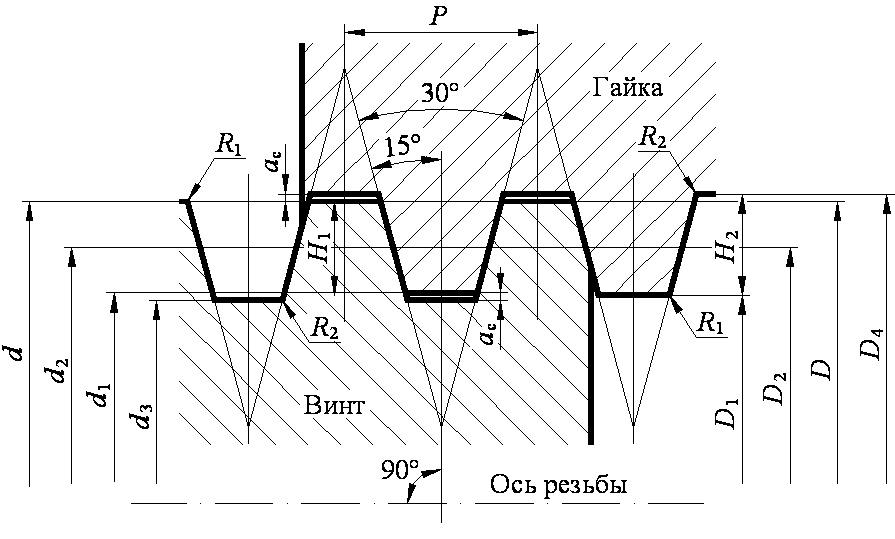 - •Профиль и основные размеры трапецеидальной резьбы (гост 24738-81)
