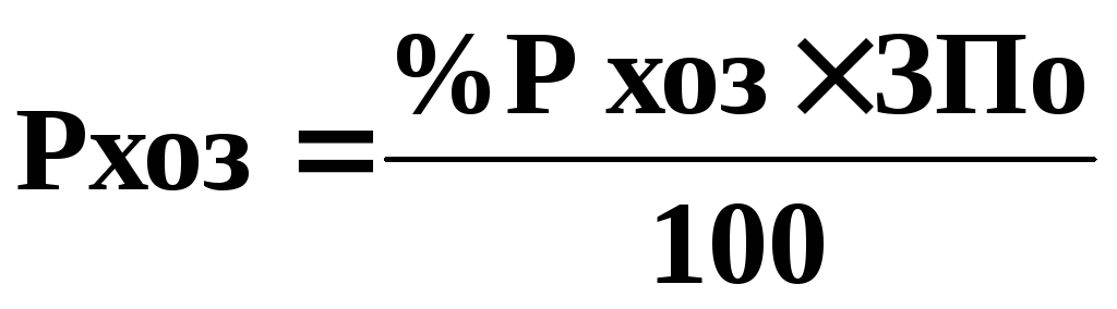 В статью «Общехозяйственные расходы» (Рхоз, руб.) включаются: расходы на оплату труда, связанные с управлением предприятия в целом, командировочные; канцелярские, почтово-телеграфные и телефонные расходы; амортизация; расходы на ремонт и эксплуатацию основных средств, отопление, освещение, водоснабжение заводоуправления, на охрану, сигнализацию, содержание легкового автотранспорта, обязательное страхование работников в Белгосстрахе от несчастных случаев на производстве и профзаболеваний. Эти расходы рассчитываются в процентах от основной заработной платы производственных рабочих по формуле