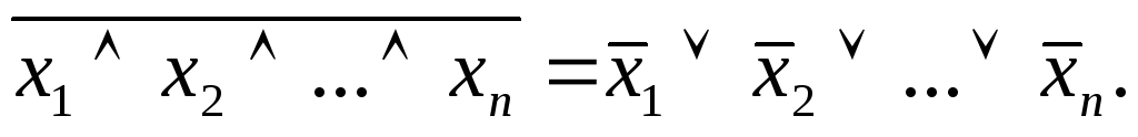 1. Отрицание логической суммы нескольких аргументов равно логическому произведению отрицаний этих же аргументов: