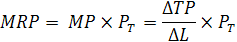 Для описания поведения фирмы на рынке факторов производства вводится понятие предельного дохода фактора производства в денежной форме (MRP). Он зависит от цены продукции, которую производит фирма, и от объема продукции, которую производит дополнительная единица фактора производства (предельной производительности). С учётом этого можно расписатьMRP как: