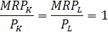 Рассмотрим рынок совершенной конкуренции. Покупая каждый фактор производства, фирма достигает состояния равновесия, если предельный продукт фактора производства равен цене фактора. Отсюда мы можем сделать вывод, что фирма оказывается всостоянии равновесия, то есть приобретает оптимальное количество всех факторов производства, если отношение предельного продукта каждого фактора к цене соответствующего фактора равно единице.