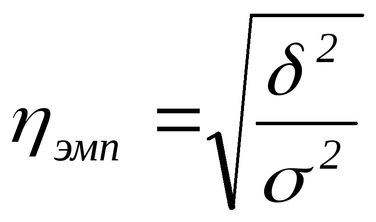 9. Теоретическое корреляционное отношение как универсальный показатель тесноты связи. Измерить тесноту связи между коррелируемыми величинами – значит определить, насколько вариация результативного признака обусловлена вариацией факторного (факторных) признака. Ранее были рассмотрены показатели, с помощью которых можно выявить наличие корреляционной связи между двумя признаками x и y и измерить тесноту этой связи. Наряду с ними существует универсальный показатель – корреляционное отношение (или коэффициент корреляции по Пирсону), применимое ко всем случаям корреляционной зависимости независимо от формы этой связи. Следует различать эмпирическое и теоретическое корреляционное отношение. Эмпирическое корреляционное отношение рассчитывается на основе правила сложения дисперсий как корень квадратный из отношения межгрупповой дисперсии к общей дисперсии, т.е.