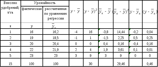 Таблица 46. Исходные данные и вспомогательные расчеты для нахождения теоретического корреляционного отношения