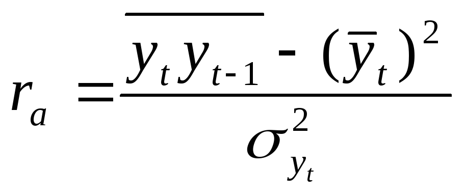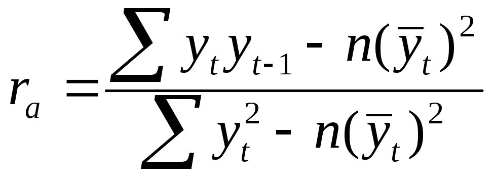 Если исходные фактические уровни ряда, относящиеся к определенному моменту (периоду) времени t, обозначить через yt, то сдвинутые на один момент (период) уровни обозначают yt-1. Тогда, подставив в формулу коэффициента корреляции (2) значения yt и yt-1, получим формулу: