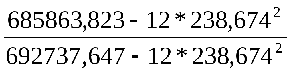 По таблице Приложения 5 определяем критическое (предельное) значение коэффициента корреляции для числа уровней n = 12 и уровне значимости α = 0,05. Оно равно 0,348. Оба рассчитанных значения оказались меньше критического, значит автокорреляция между уровнями в обоих рядах динамики отсутствует, следовательно, можно коррелировать уровни x и y.