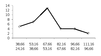 Данные табл. 12 и рис. 4 показывают характерную для многих признаков форму распределения: чаще встречаются значения средних интервалов признака, реже – крайние (малые и большие) значения признака. Форма этого распределения близка к нормальному закону распределения, которое образуется, если на варьирующую переменную влияет большое число факторов, ни один из которых не имеет преобладающего значения.