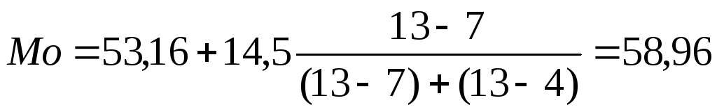 По данным табл. 12 рассчитаем точечную моду по формуле (2):