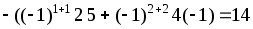 Отметим, что после первого знака равенства был вынесен множитель только из 1-й строки. Из второго столбца вынести ничего при этом нельзя, т.к. а12уже стал равным 1. Далее по определению был раскрыт определитель по 1-й строке. После чего в полученном определителе 2-го порядка можно вынести множитель 2 из 2-го столбца. При этом знак слагаемого установлен устно во всех случаях.