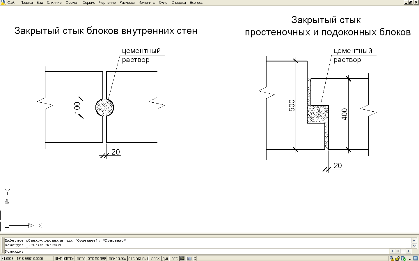 Закрытые стыки образуются при стыковании внутренних стен и горизонтального перемычечного блока, а также простеночных подоконных блоков. Вертикальные стыки с обеих сторон предварительно заделывают уплотнительным шнуром, а затем зачеканивают на глубину 20…30 мм густым раствором.
